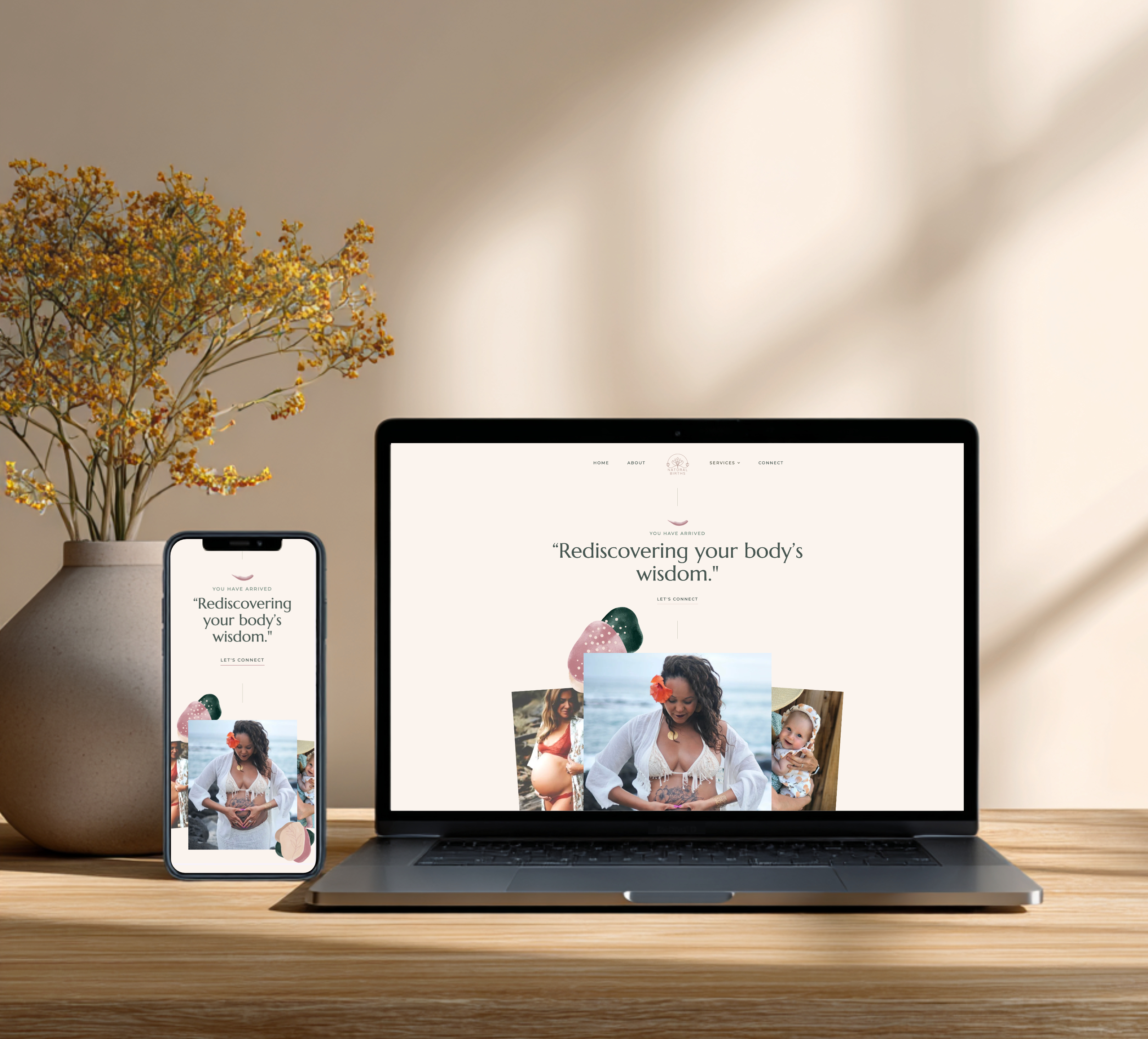 The client was a student midwife and full-spectrum birthworker offering a range of spiritual and somatic services rooted in indigenous wisdom. She had no previous digital presence and was not tech-savvy, so my role included guiding her step-by-step through a complex creative process while ensuring the final product reflected her values, voice, and holistic philosophy.